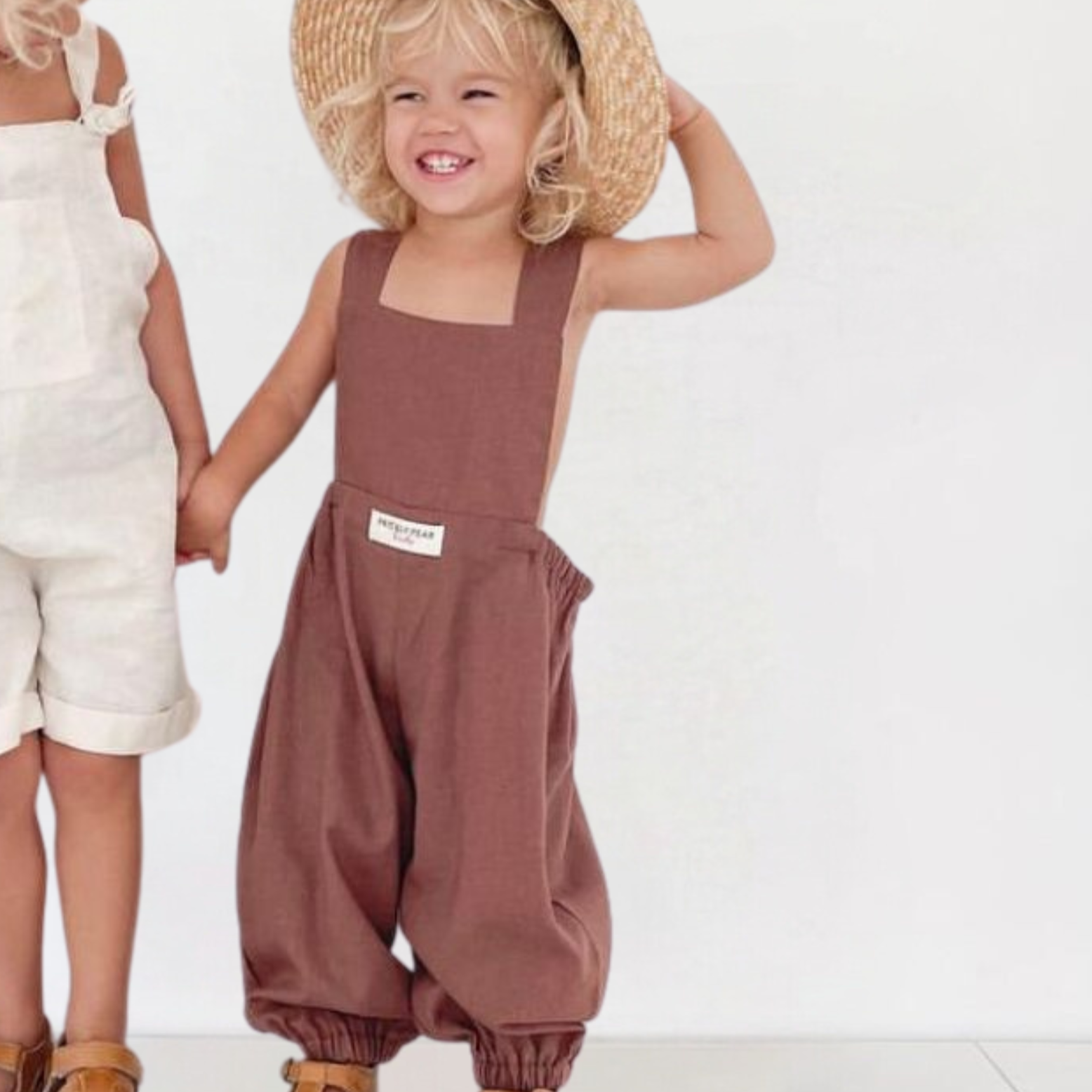 Designed with an OVERSIZED Bubble styled pants for ultimate comfort and wear (because let’s be honest, no linen garment should ever sit tight against the body) with elasticated waistband and anklets - These Dungarees are bound to give your little ones all the right comforting feels while looking their best. Wear Long as is or hitch up to a 3 quarter for the warmer days.