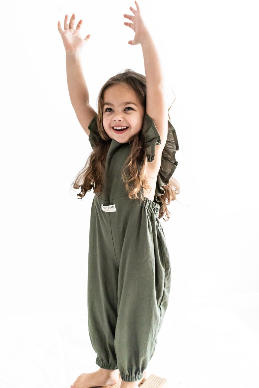 These Frilled Long legged oversized Dungaree's are all handmade using the finest locally sourced Linen Rayon blends South Africa has to offer.
